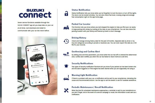 A Suzuki Motor Corporation kapcsolt szolgáltatást vezetett be az európai piacon a még kényelmesebb felhasználói élmény biztosítása érdekében. A SUZUKI CONNECT szolgáltatást Európa-szerte a Magyar Suzuki Zrt. biztosítja Magyarországról.