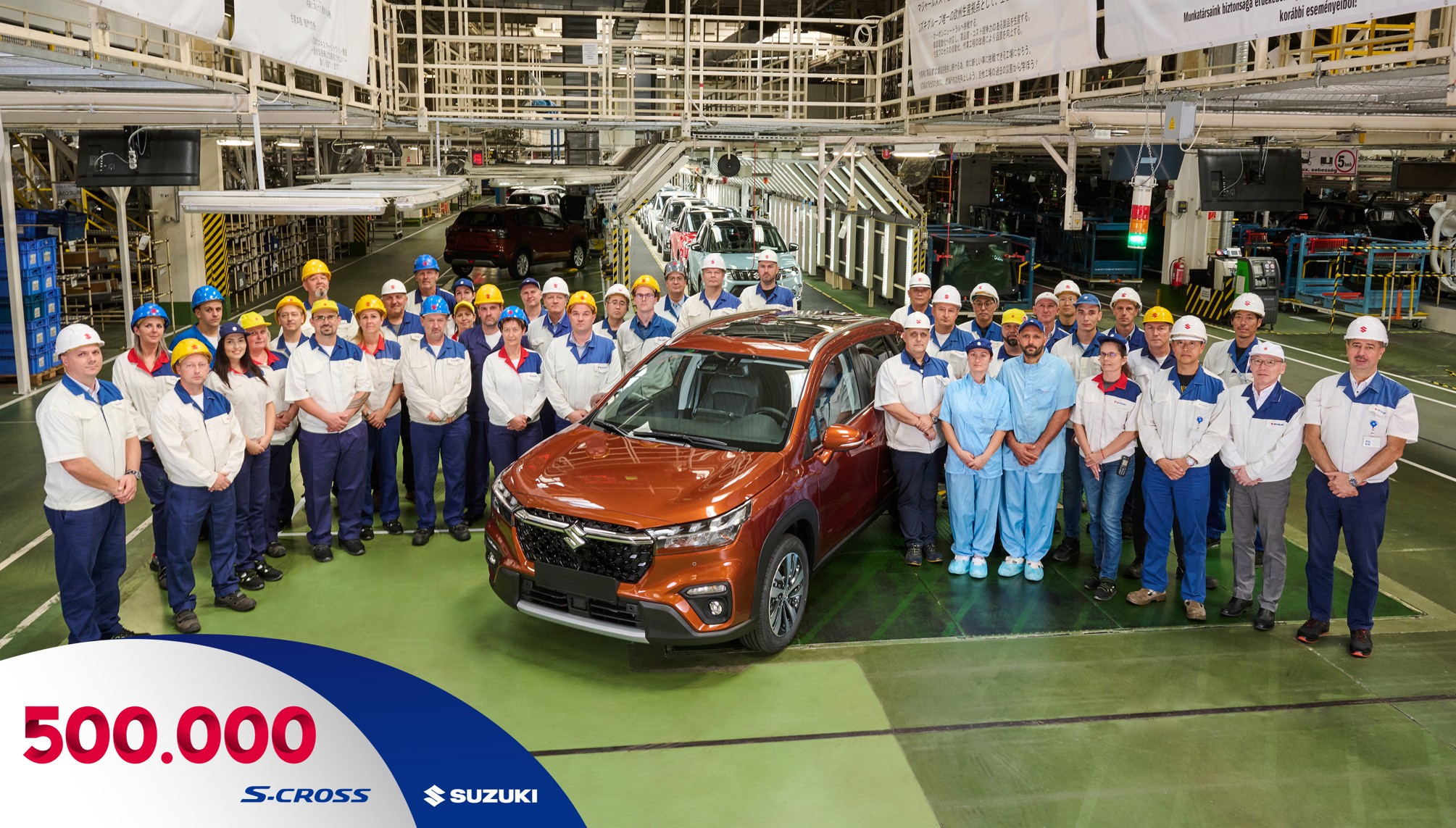 A fenntartható autózást helyeztük előtérbe, amikor 2019 év végén átálltunk a hibrid meghajtású modellek gyártására. Az esztergomi gyárunkban elkészült 500 ezredik hibrid modell egy kanyonbarna színű, GLX felszereltségű, napfénytetős, AllGrip összkerék-meghajtású, automata S-CROSS volt.