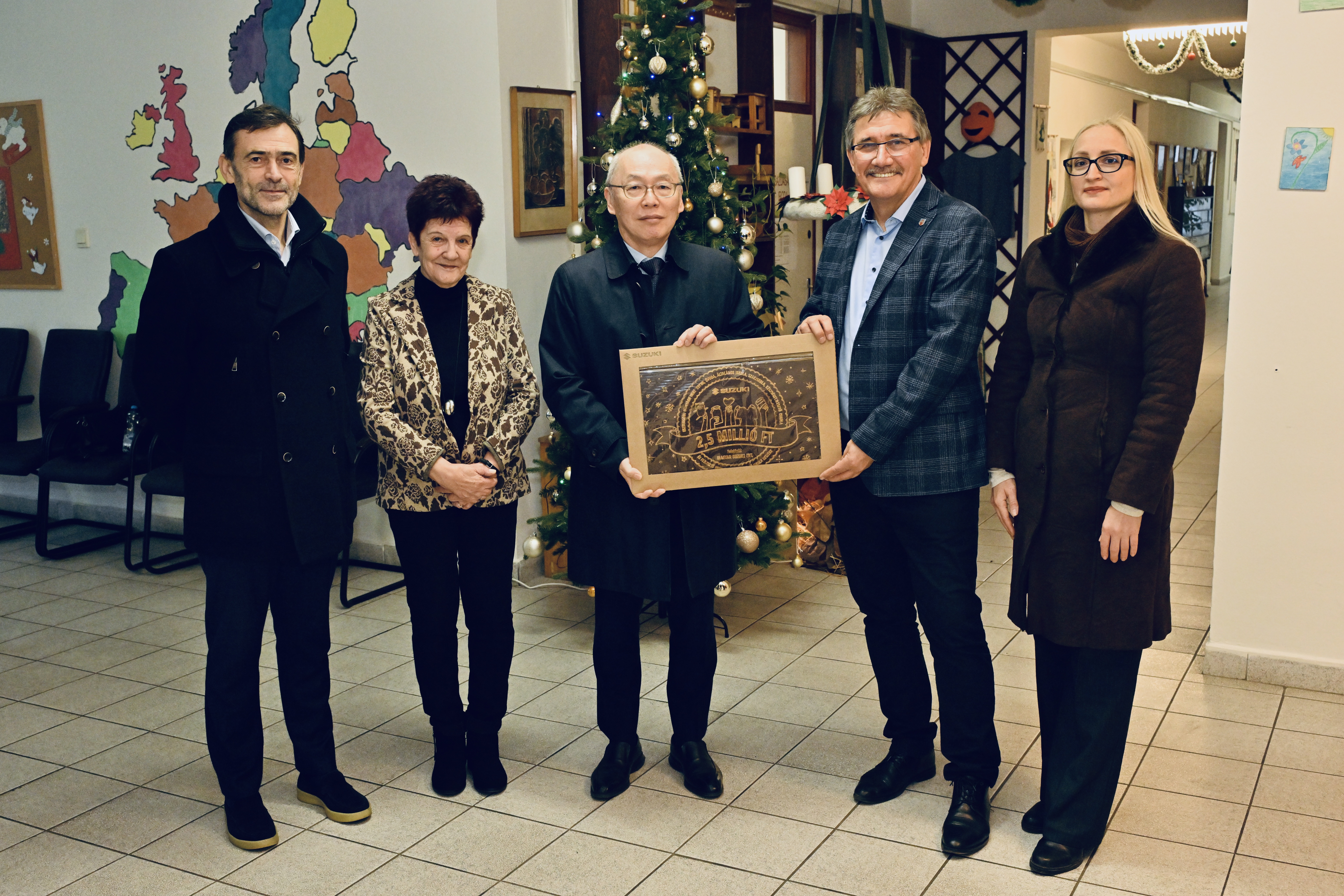 A karácsonyi támogatást Atsumi Masato, a Magyar Suzuki Zrt. vezérigazgatója, Krisztián Róbert vezérigazgató-helyettes és Bonnár-Csonka Zsuzsanna, vállalati kommunikációs vezető adták át a két szervezet képviselőinek.